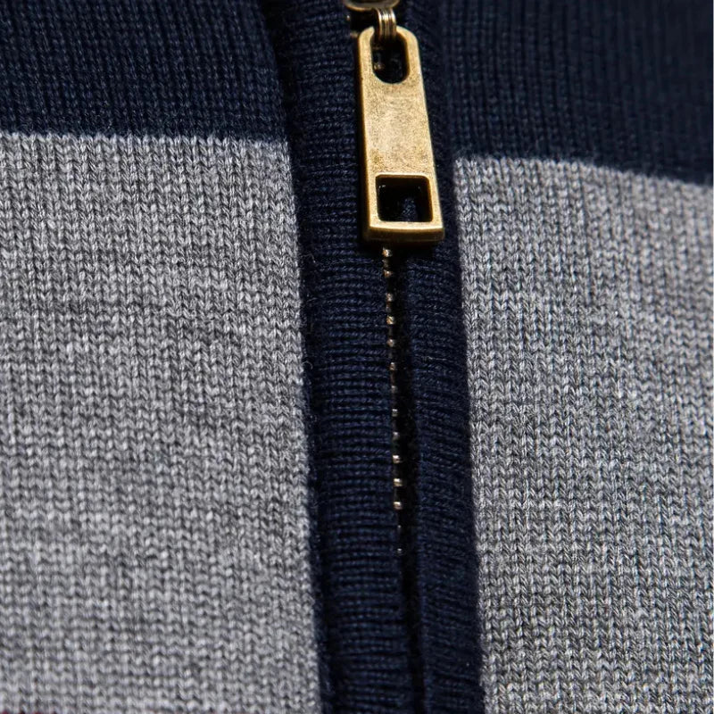 Deze gebreide trui met ritssluiting is gemaakt van hoogwaardig materiaal dat uitstekende thermische isolatie biedt en toch ademend is.